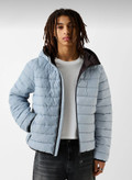کاپشن آبی روشن یونیسکس برند برشکا کلاه دار بسیار سبک و گرم سایز لارج