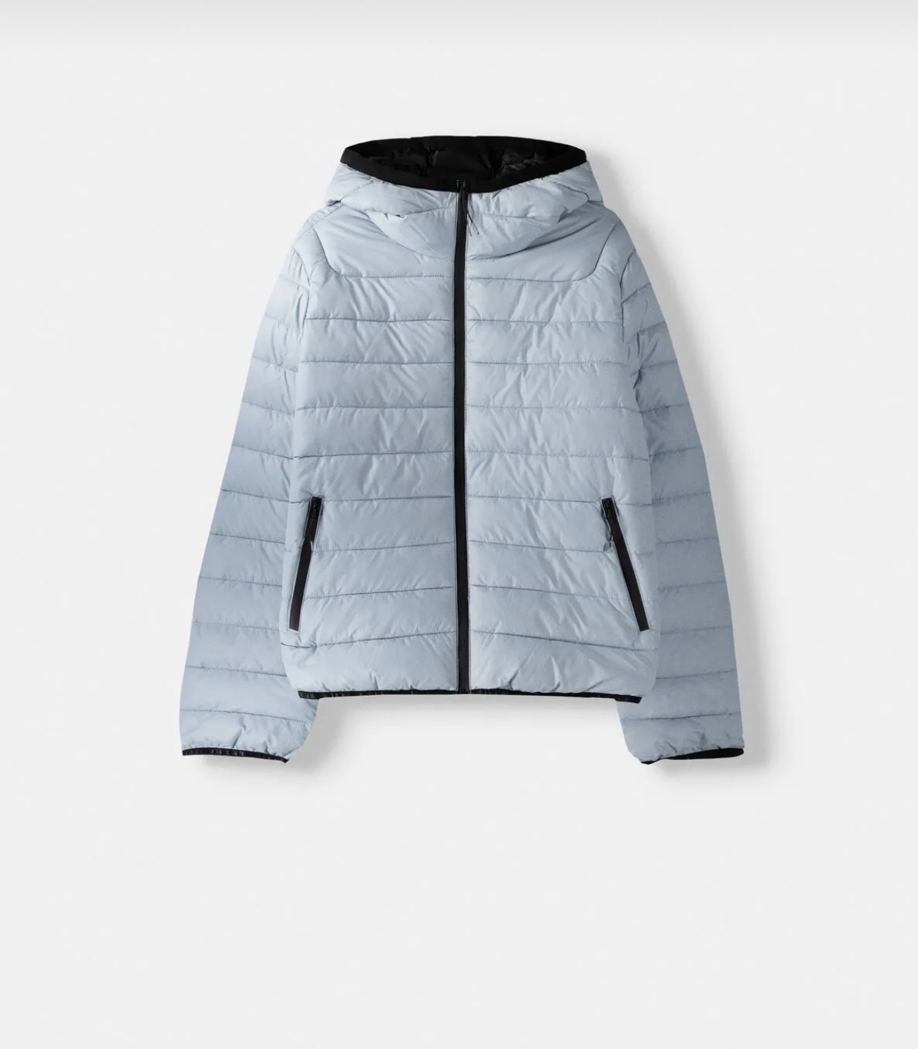 کاپشن آبی روشن یونیسکس برند برشکا کلاه دار بسیار سبک و گرم سایز لارج