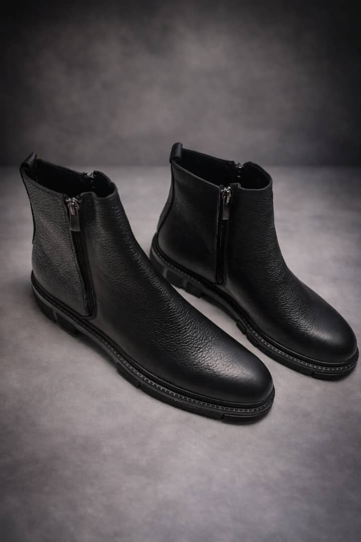 بوت مردانه مشکی چرم ترک