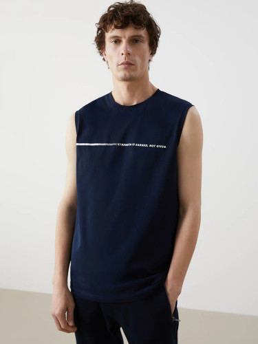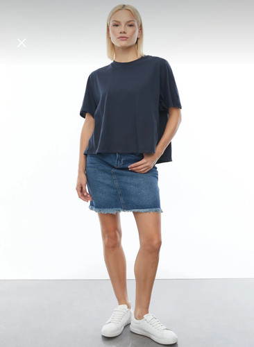 تي شرت ترك استين كوتاه سرمه اي برش دار از پهلو
