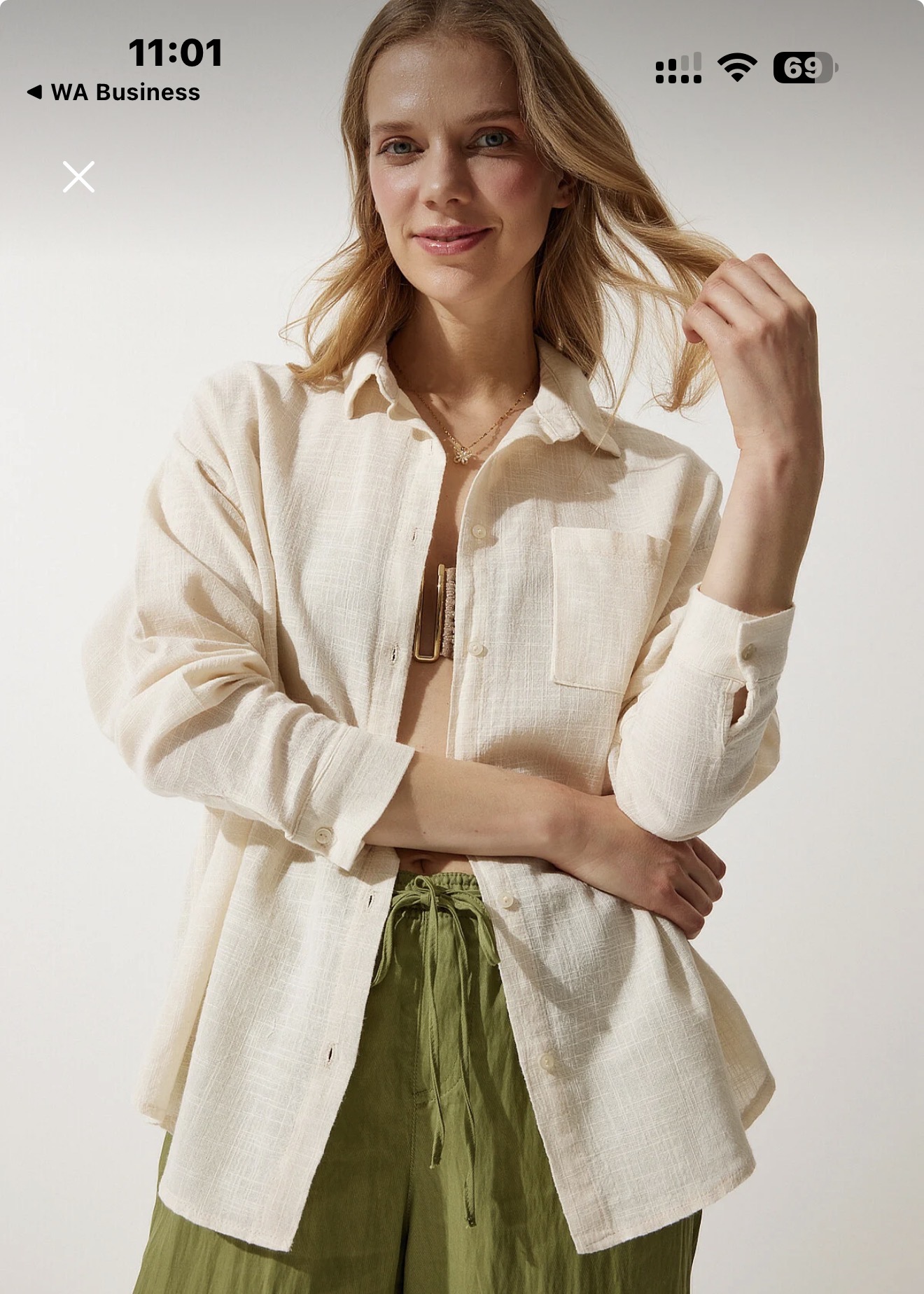 شومیز زنانه آستین بلند نخی لنین تابستانی